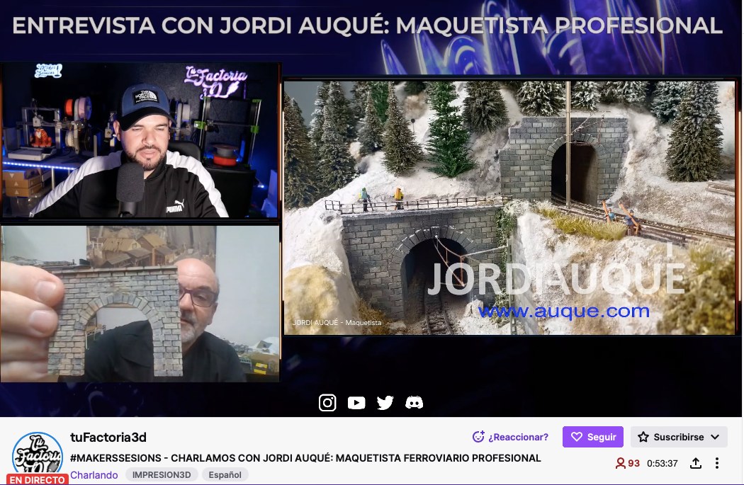 Charla en streaming sobre la Impresion 3D aplicada al modelismo ferroviario en #makerssions con TuFactoria3d, casi hora y media de charla mostrando trabajos e ideas. desde JORDI AUQUE maquetas, quiero daros las gracias a todos pues fueron más de 100 personas las que seguisteis en...